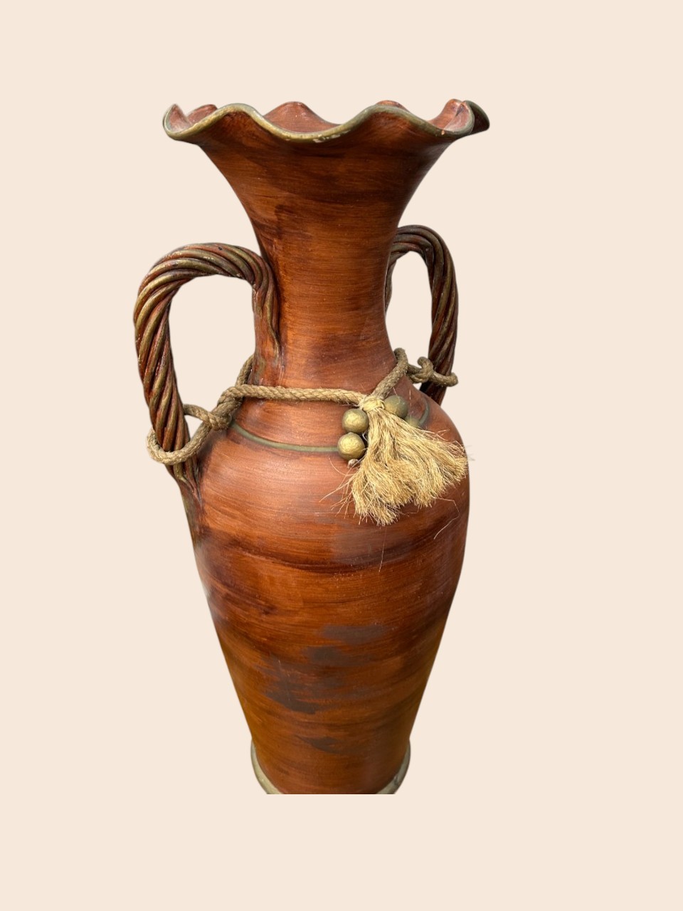Jarrón de barro artesanal, ideal para decorar con un toque rústico y natural cualquier espacio de tu hogar.