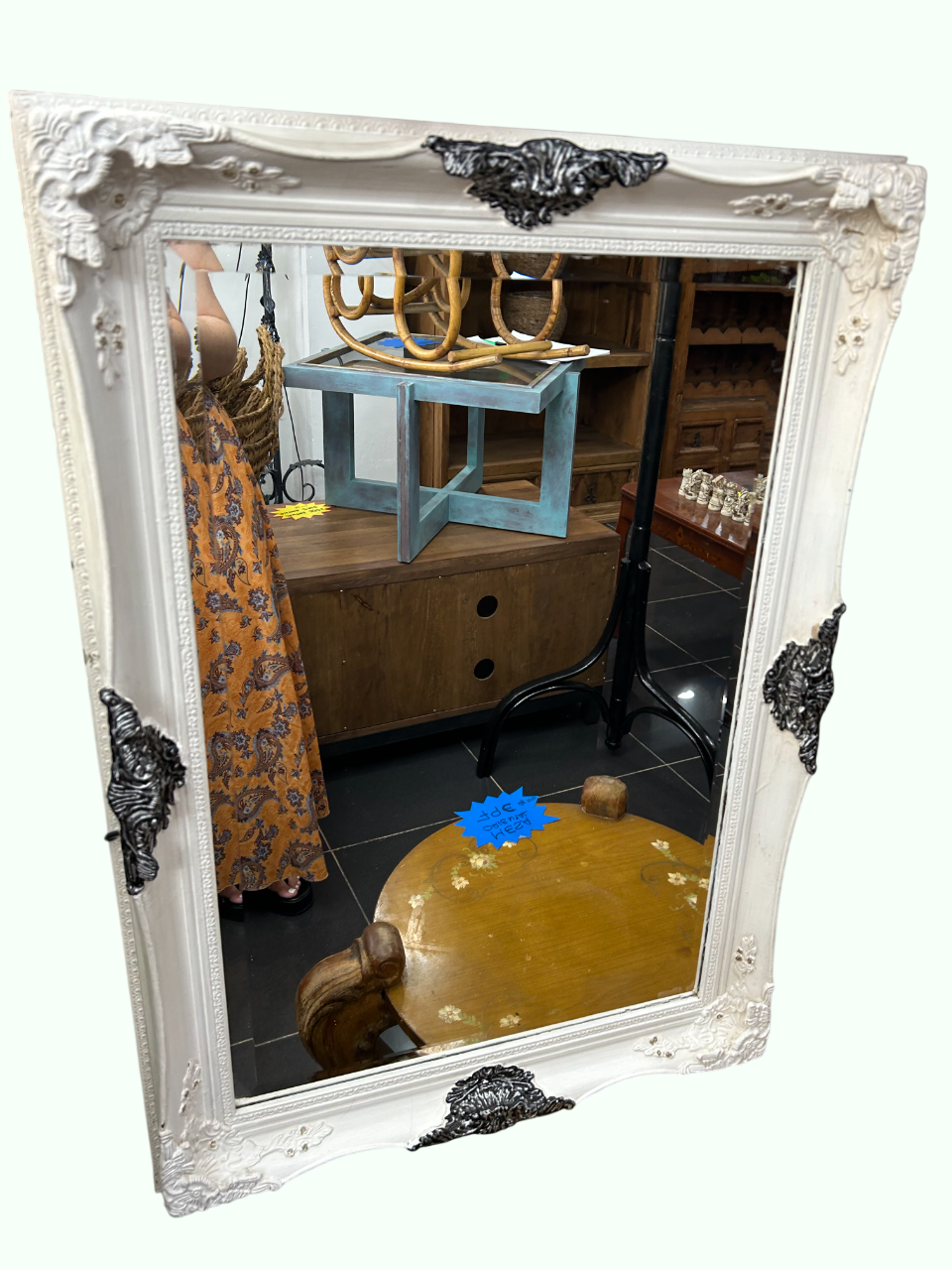 Espejo elegante con marco en blanco y negro, perfecto para decorar cualquier espacio con estilo moderno y contraste sofisticado.