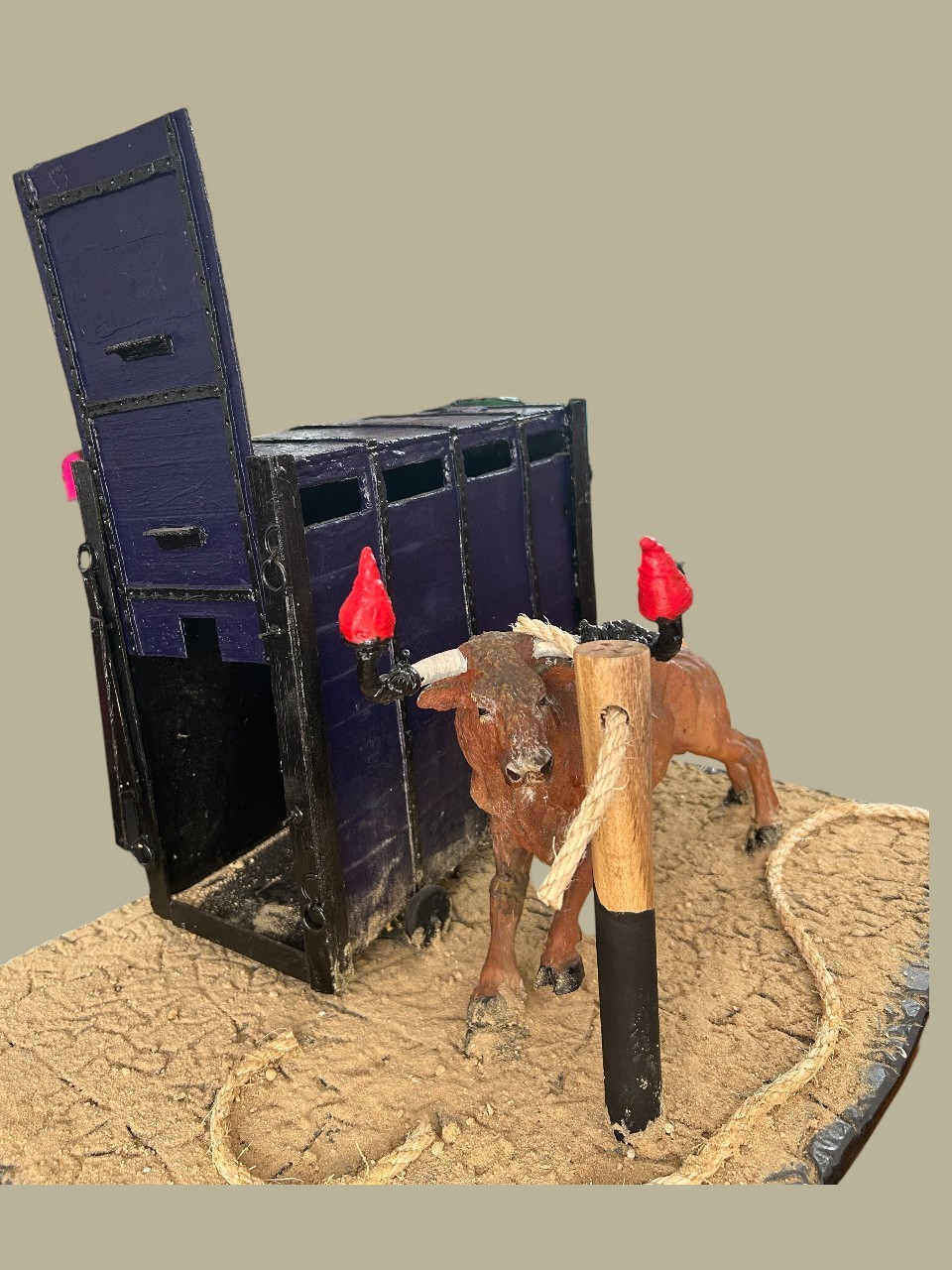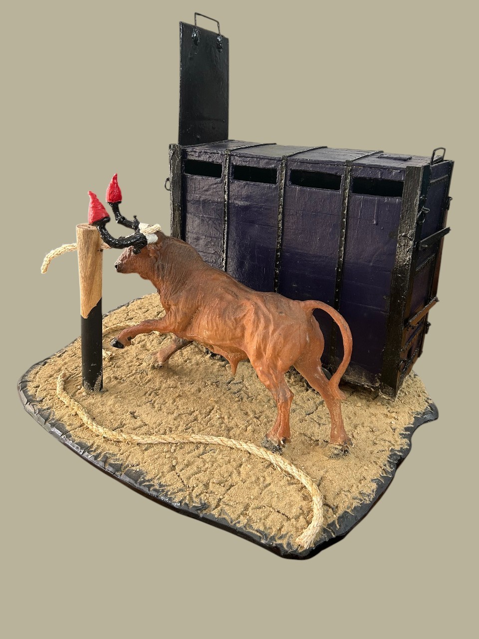 Figura de toro decorativo con caja incorporada, ideal para añadir un toque original y funcional a cualquier espacio del hogar.