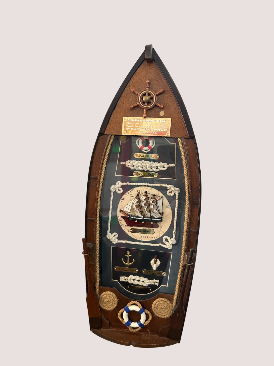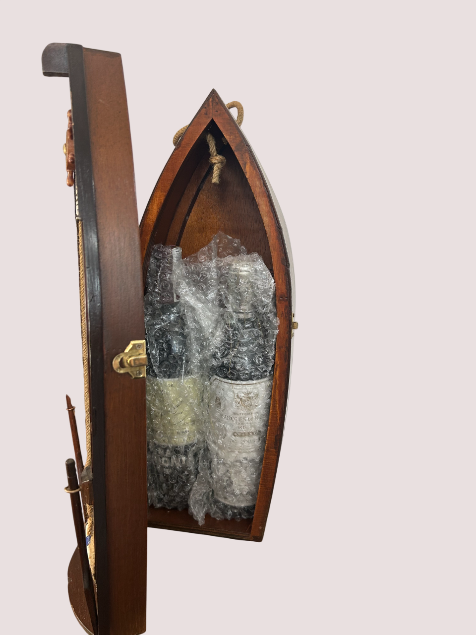 Botellero con detalles marineros y botellas incluidas, ideal para decorar con estilo náutico y original cualquier espacio.