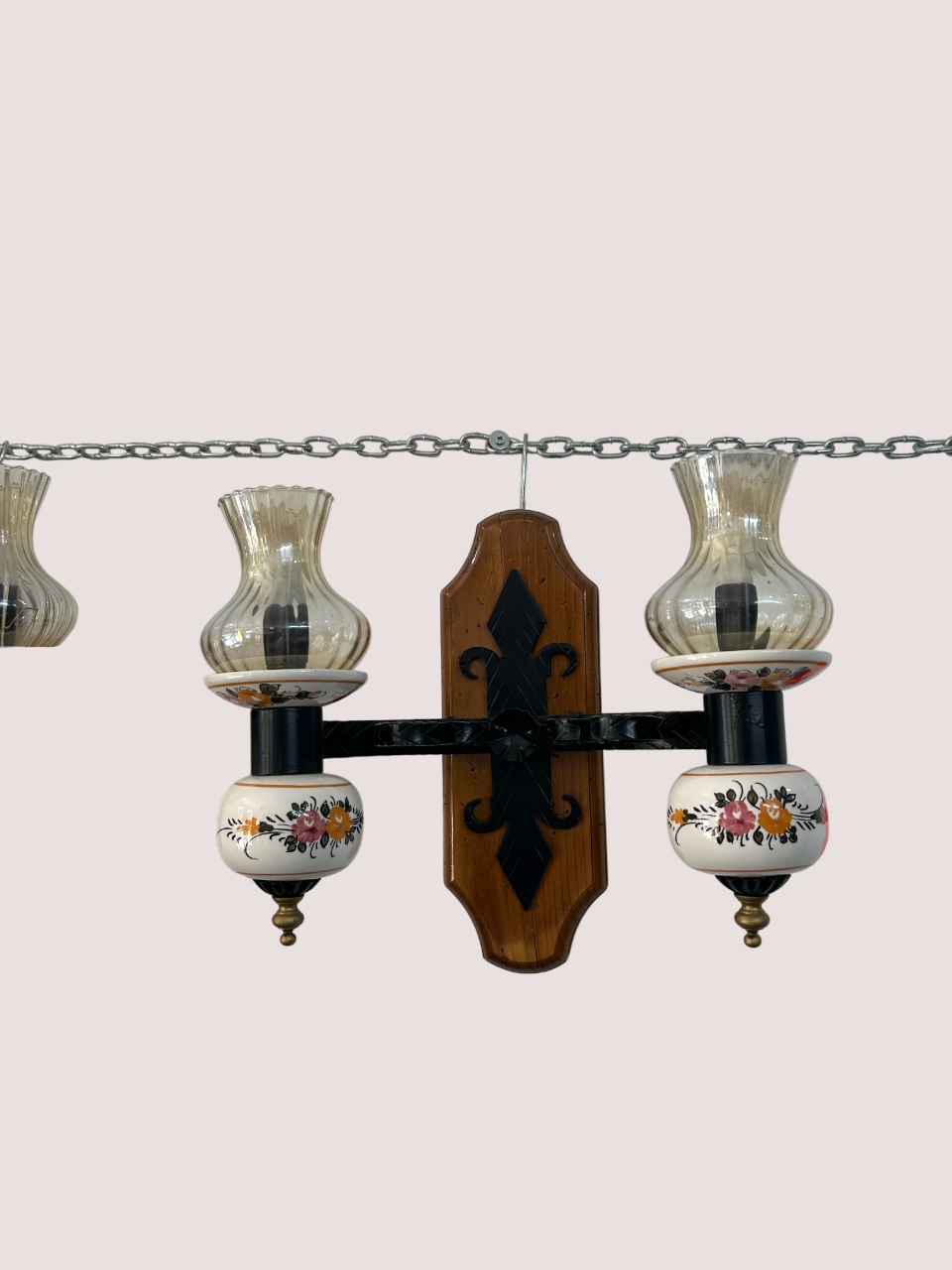 Apliques de forja y cerámica con dos bombillas, ideales para iluminar y decorar con un estilo rústico y elegante cualquier espacio.