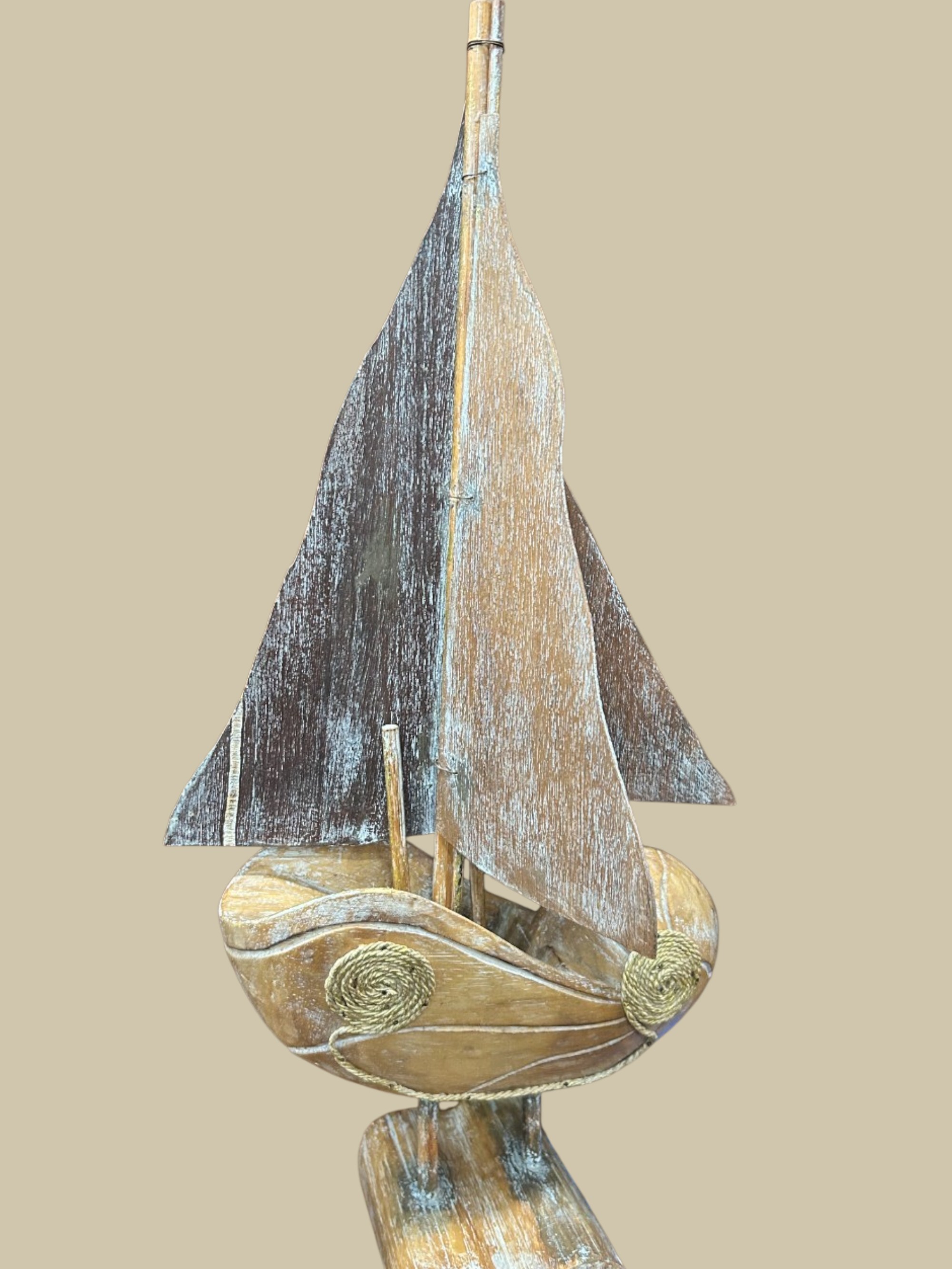 Añade un elemento decorativo con presencia a tu hogar con nuestro barco grande de madera. Perfecto para salones, oficinas o rincones temáticos náuticos, combina diseño artesanal y detalle cuidado, aportando estilo, carácter y un toque marítimo sofisticado a cualquier espacio.