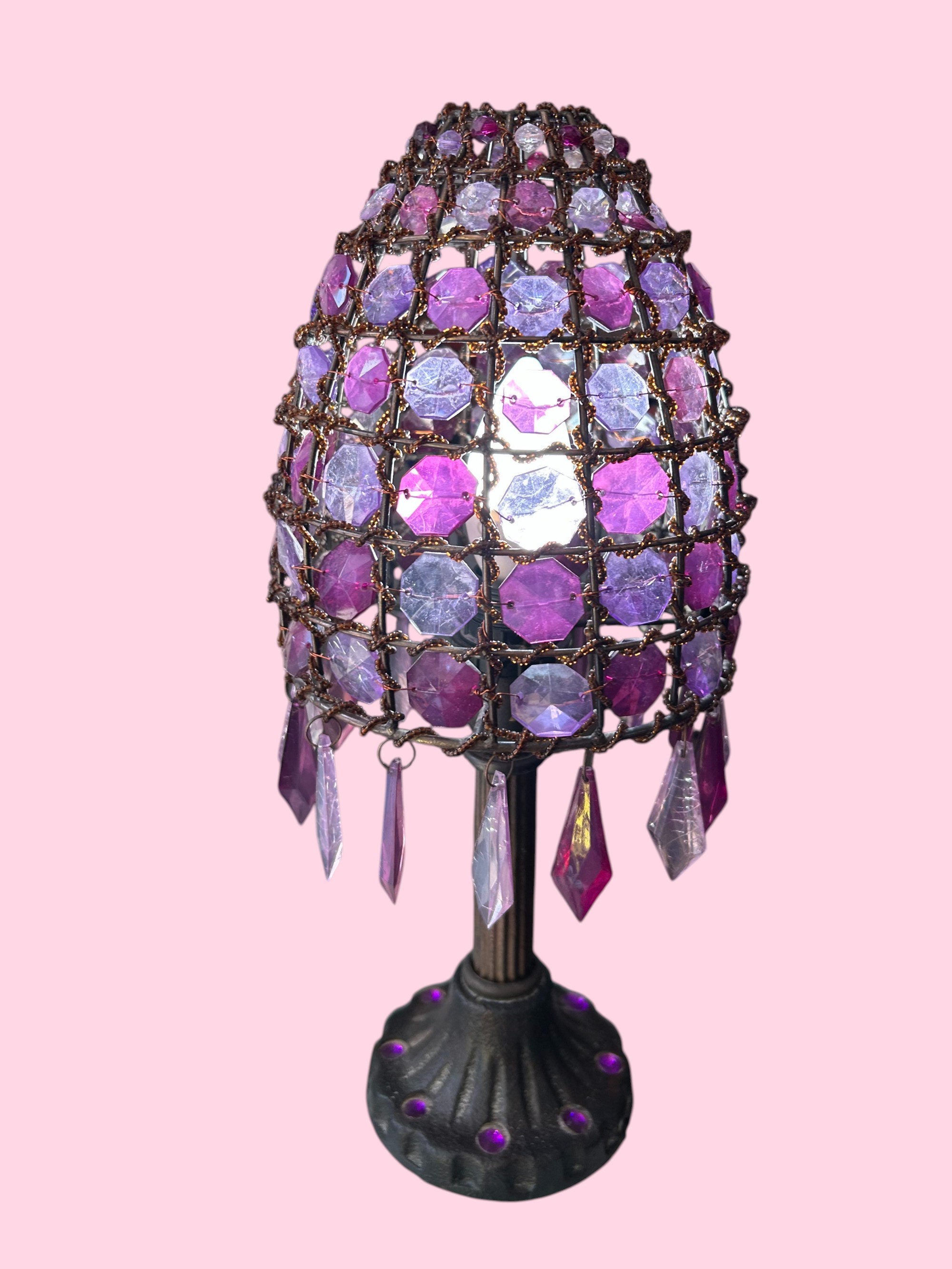 Ilumina tu espacio con glamour y estilo gracias a nuestra lámpara decorativa adornada con detalles morados. Perfecta para salas, dormitorios o rincones especiales, combina elegancia y sofisticación, aportando un toque brillante y original que realza cualquier ambiente.