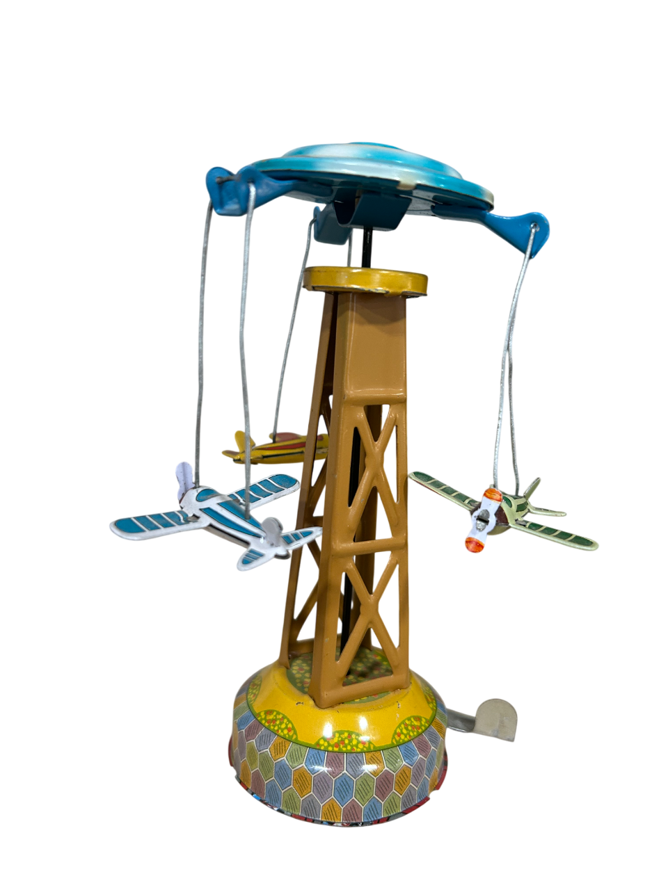 Encantador tío vivo de hojalata con aviones, una pieza vintage que captura la nostalgia y añade un toque lúdico y retro a cualquier espacio. Perfecto para memorar momentos de tu juventud.