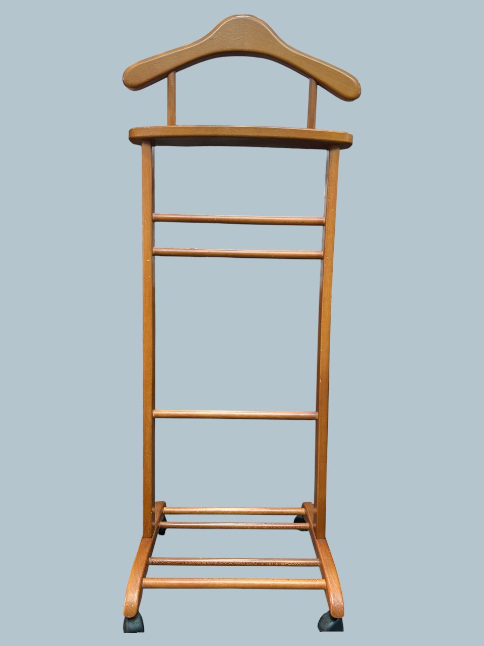 Mantén tu ropa organizada con este clásico galán de noche, un mueble elegante y práctico diseñado para colgar abrigos, trajes, bolsos y accesorios. Su estilo antiguo y atemporal aporta un toque de carácter a cualquier dormitorio o vestidor, combinando funcionalidad con estética clásica.