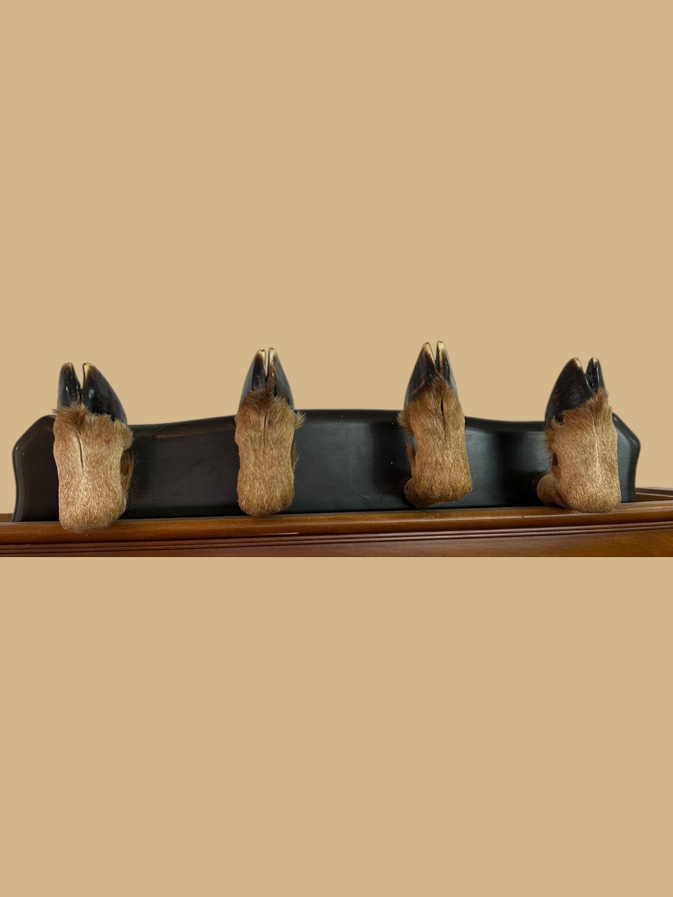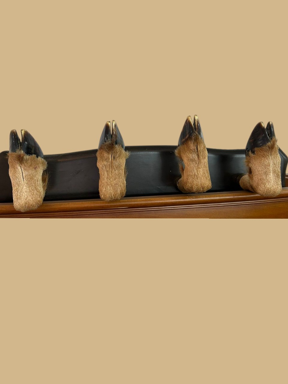 Perchero rústico elaborado con auténticas patas de ciervo, cuidadosamente taxidermizadas y montadas sobre una sólida base de madera oscura. Cada pata conserva su textura y color natural, aportando un estilo tradicional y distintivo. Ideal para decoración de caza, ambientes rurales o coleccionistas de piezas singulares. Un artículo original y llamativo que combina artesanía y carácter.