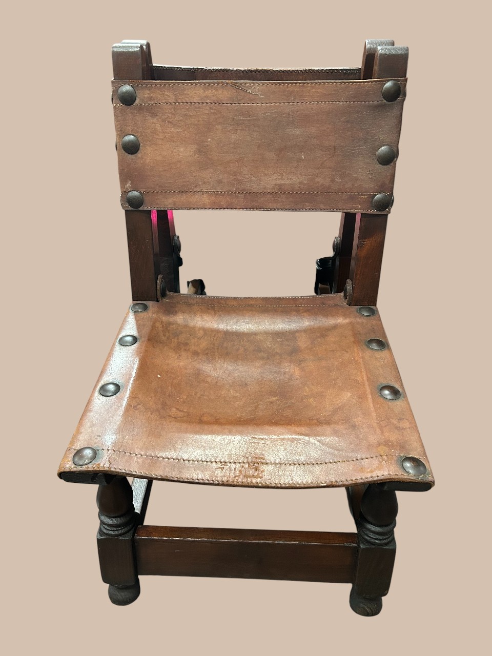 Elegante silla tapizada en cuero, que combina comodidad y estilo atemporal. Su diseño robusto y refinado la hace ideal para salones, despachos o comedores, aportando un toque distinguido y sofisticado. Una pieza duradera y funcional que se adapta fácilmente a diferentes estilos de decoración.