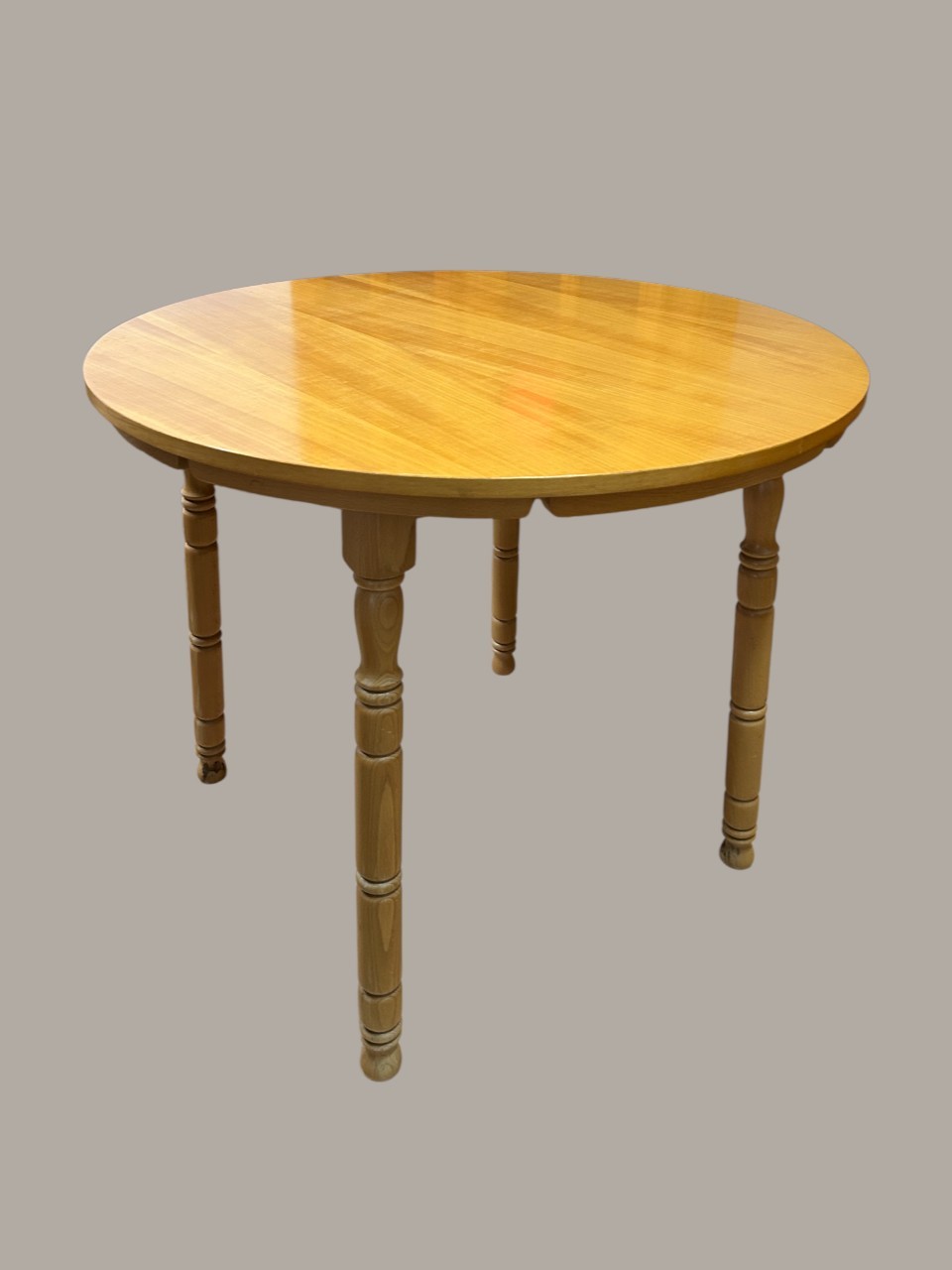 Aporta calidez y equilibrio a tu hogar con esta mesa circular de madera en acabado natural. Con un diámetro de 90 cm, es la pieza ideal para espacios optimizados, ofreciendo un diseño funcional con patas torneadas que añaden un toque de elegancia clásica y artesanal a cualquier comedor o cocina.