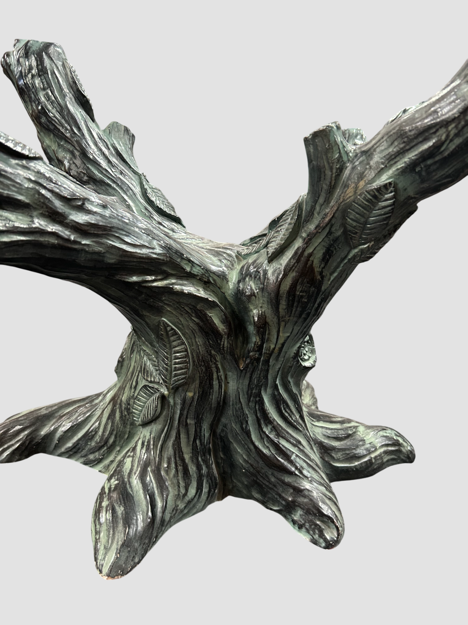 Mesa de centro y auxiliar con superficie de cristal y soporte de tronco de olivo, perfecta para decorar con estilo natural y elegante cualquier espacio.